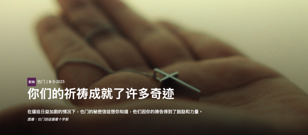 這份祝福包括人們認識耶穌,特別是透過社群媒體,接觸到越來越多對伊斯蘭教產生疑問的也門人,尤其是在極端主義抬頭的情況下。