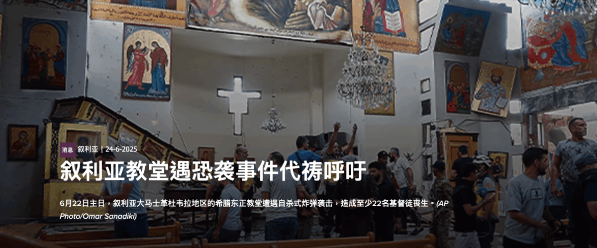原文敞开的门蒙允转载 叙利亚教堂遇恐袭事…
