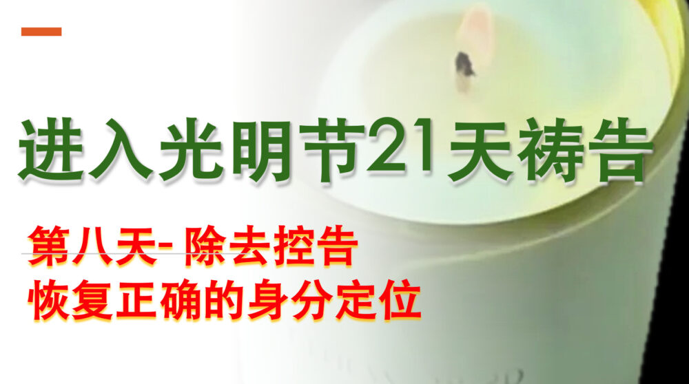 今天我们来到预备进入光明节第八天。我们要把那些在心里长期运作的控告带到祢面前。
